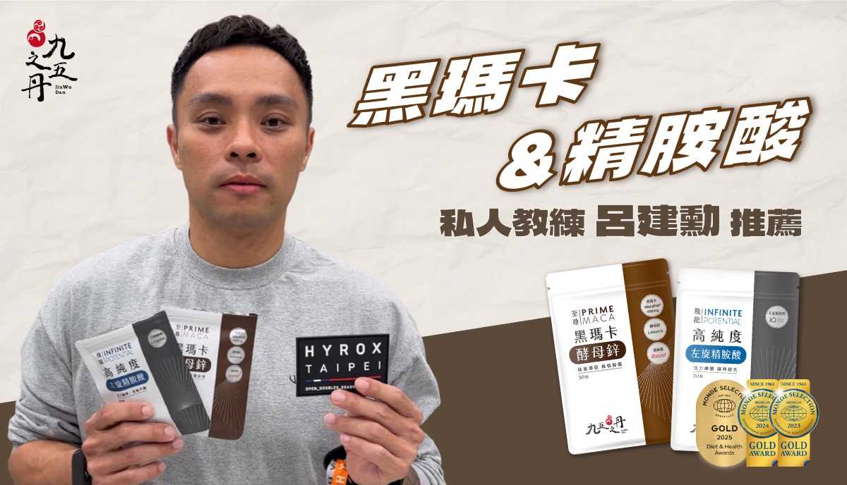來自一個不靠醫美,全靠健身變身的健人真實分享!除了「練」身體,你更需要「顧」好身體!在白天工作、晚上訓練的雙倍消耗下,九五之丹黑瑪卡+精胺酸就是我維持最佳狀態的秘訣!坐擁世界品質鑽石獎盃的實力,品質安心看的見,讓你的保養不再「吃心酸」!