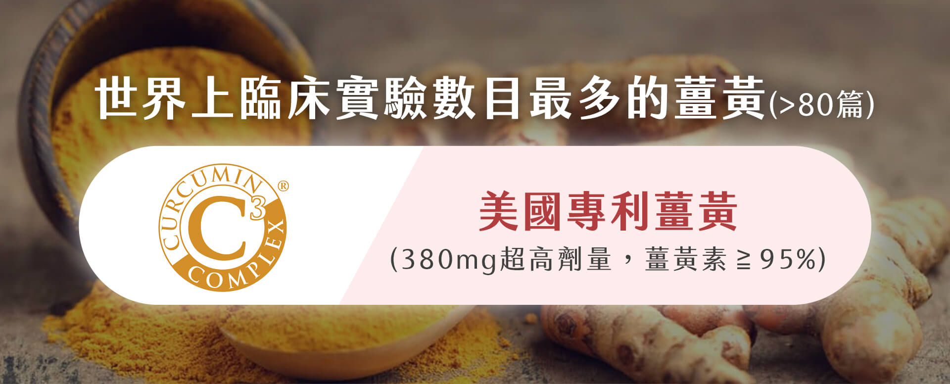 - 特色:美國多專利C3薑黃素+印度薑黃