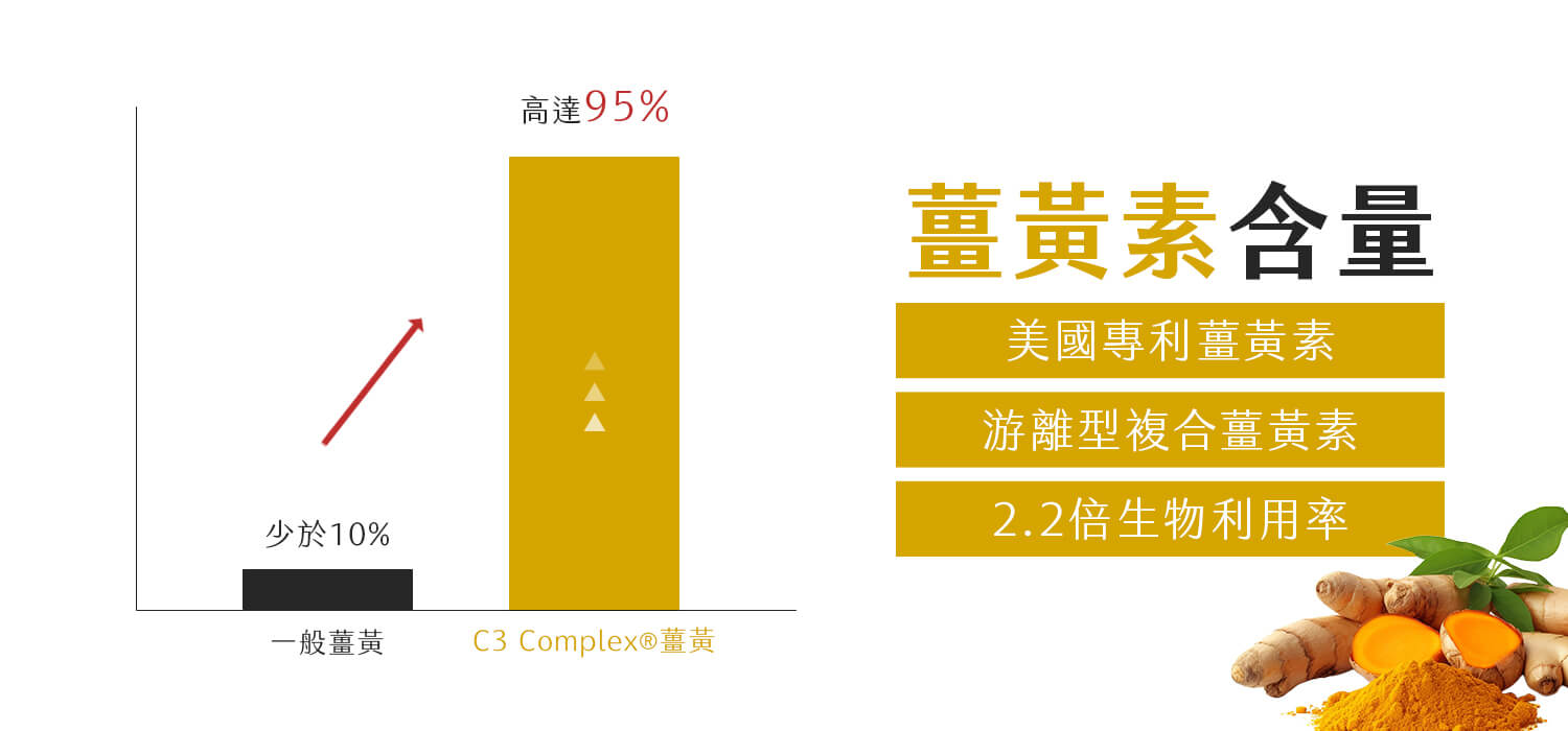 | 一般薑黃素品牌 | C3 Complex®游離型薑黃素 | |