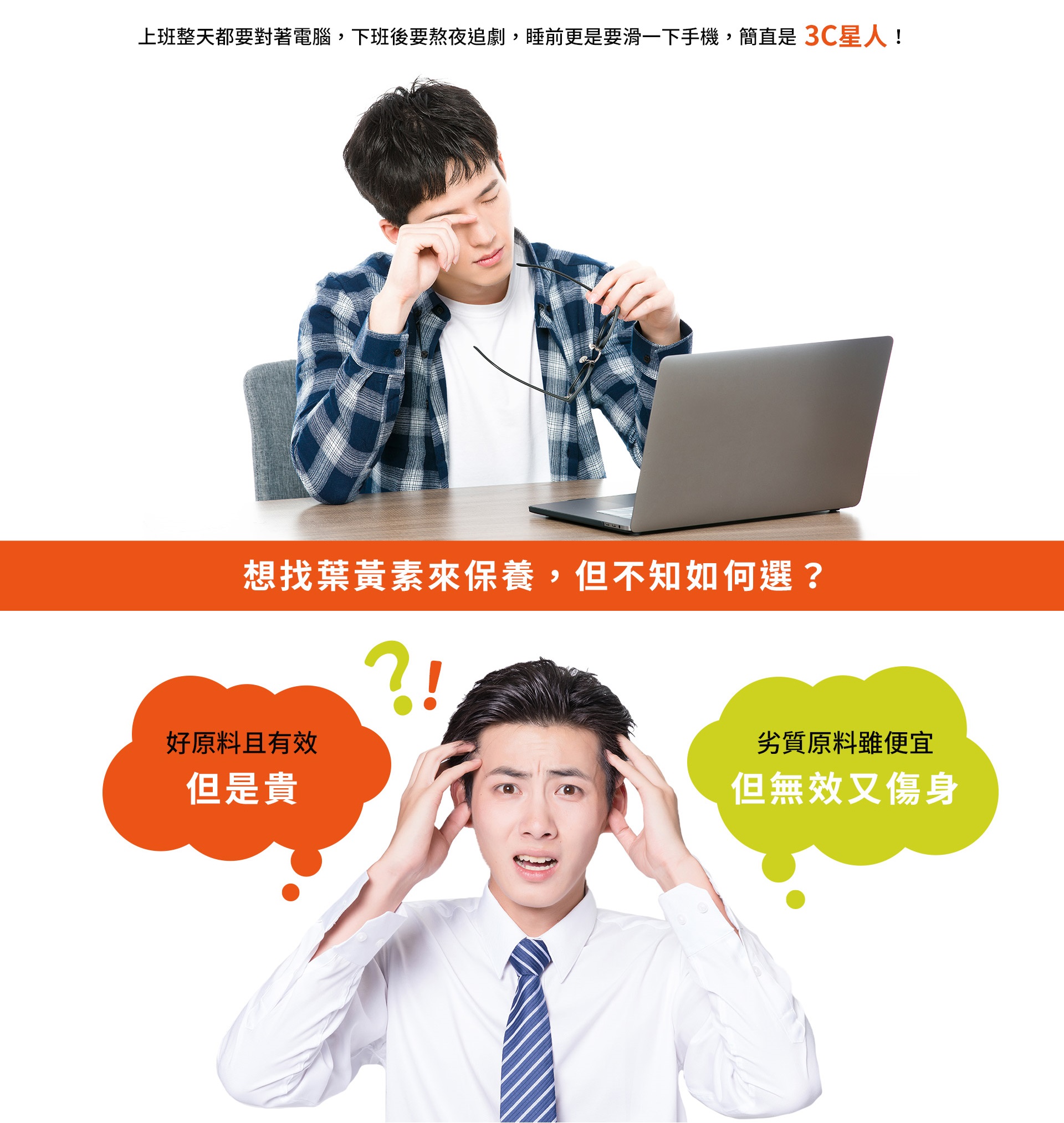 花青素常作為葉黃素的輔助成分,有優秀的保護力及舒緩力,其保護力是維生素E的50倍、也是維生素C的20倍,十分適合長時間的3C使用者。