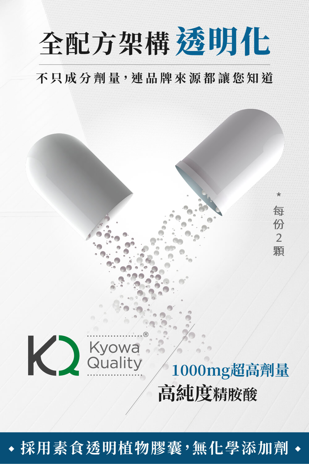 | 成份 | 每份2粒,含Kyowa®左旋精胺酸 1000mg |