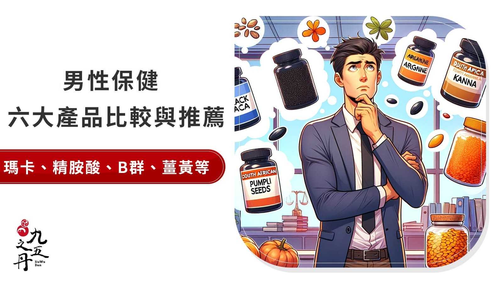 黑瑪卡、精胺酸、南非醉茄、B群鋅、薑黃與南瓜籽等6種成份是常見的男性保健產品,這6種究竟有何不同?什麼族群適合哪種?該如何挑選呢?就讓九五之丹來告訴您。