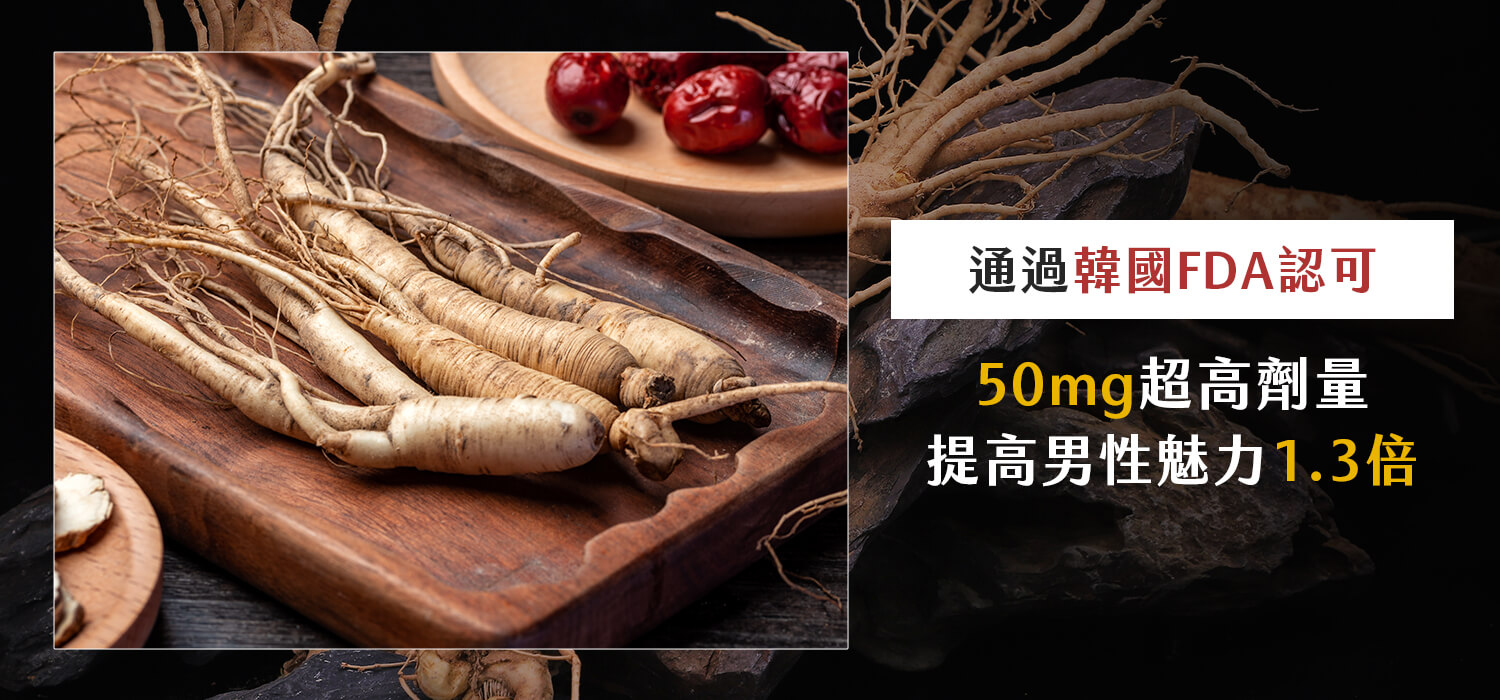 紅蔘是「人蔘」的一種,「人蔘皂苷」是其最重要的成份,其中紅蔘中的人蔘皂甘多達37種,被認為具有多種功效,如增強體力、精神旺盛、滋補強身等,是增加男性魅力至為重要的關鍵。Ginlac®韓國頂級紅蔘是通過韓國FDA(KFDA)認可的原料廠,採用人蔘最佳產地-韓國錦山珍貴紅蔘,特選人蔘皂苷成分含量高的5年以下的錦山紅蔘,經由專利乳酸菌發酵處理,提高人蔘皂苷吸收率。