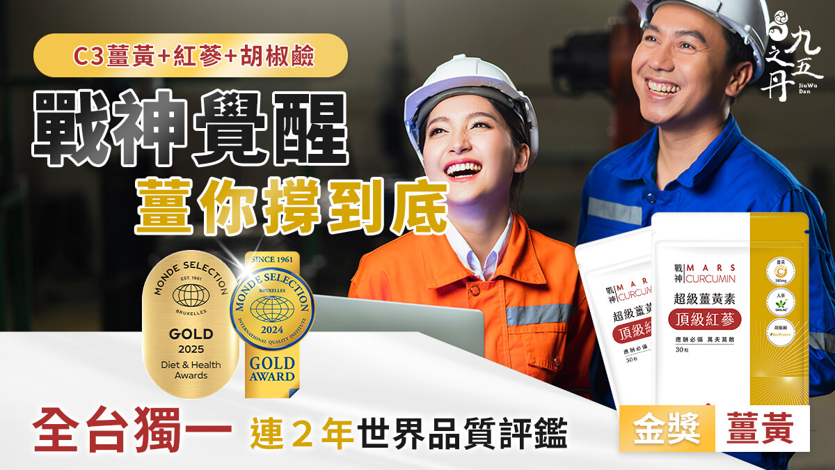 ■ 戰神.超級薑黃+紅蔘:台灣唯一,連兩年世界品質評鑑金獎薑黃