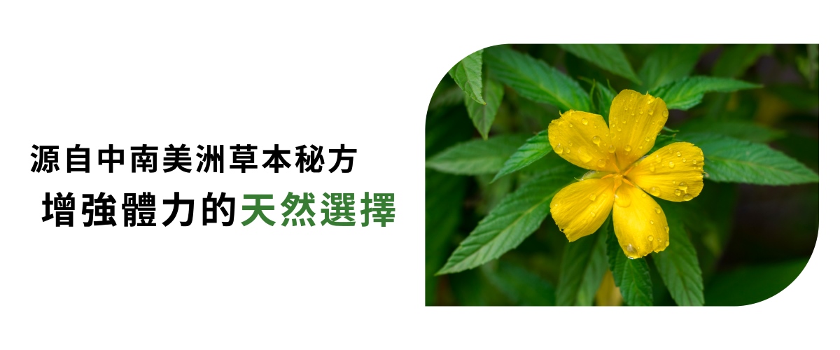 透納葉是一種野生灌木,開有黃色小花朵,在中美洲、南美洲和墨西哥等地區可以發現它生長的足跡,由西班牙人傳至歐洲,進而打開科學家對透納葉的研究。透納葉的營養成分非常的豐富,臨床研究針對的功能性上多為提升精力和體力、促進新陳代謝、調整體質和生理機能、滋補強身和增強體力,對於舒壓和提升幸福滿足感有幫助。
