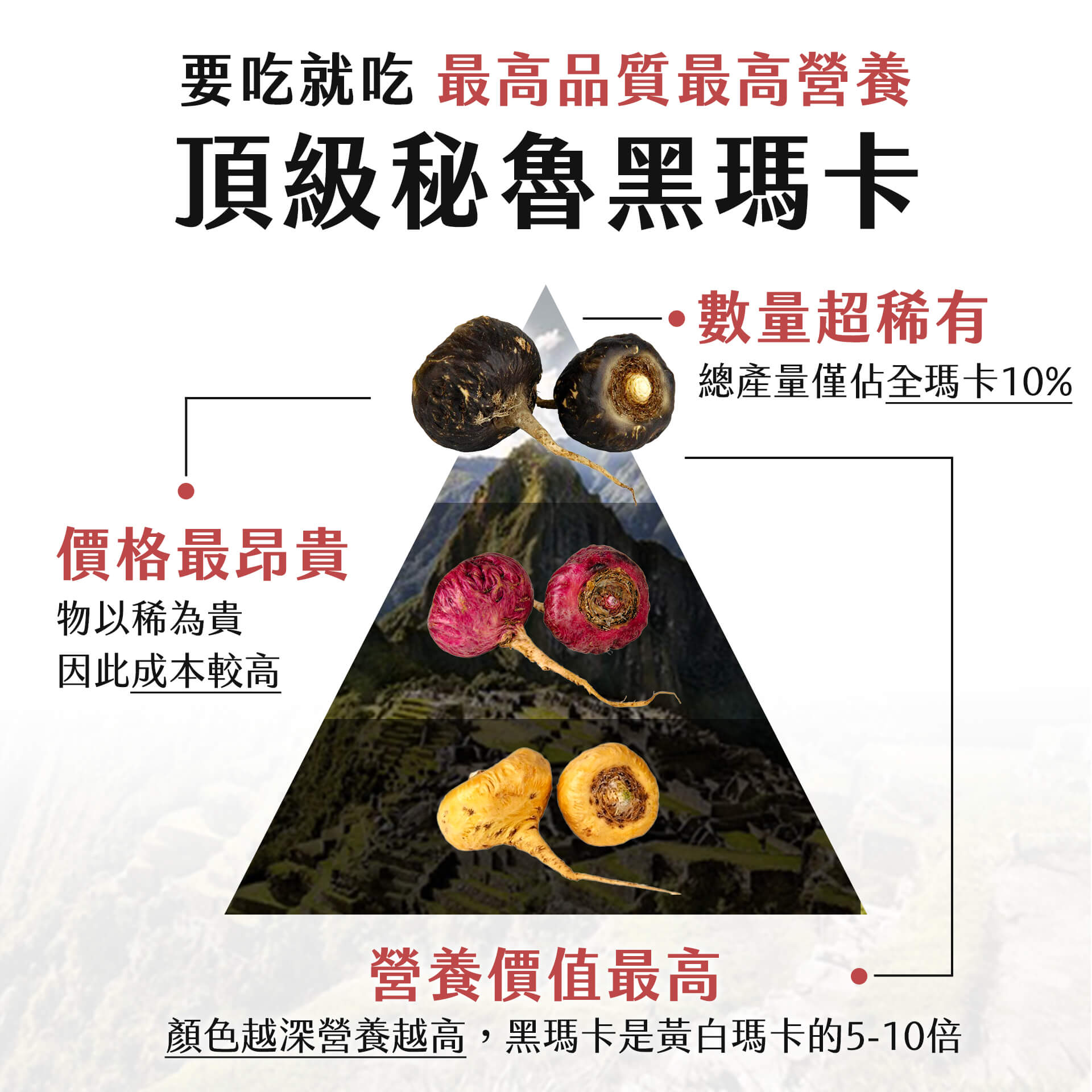 市面上有很多宣稱瑪卡劑量高,但仔細看,不是講黑瑪卡,而是比較便宜的白黃瑪卡…