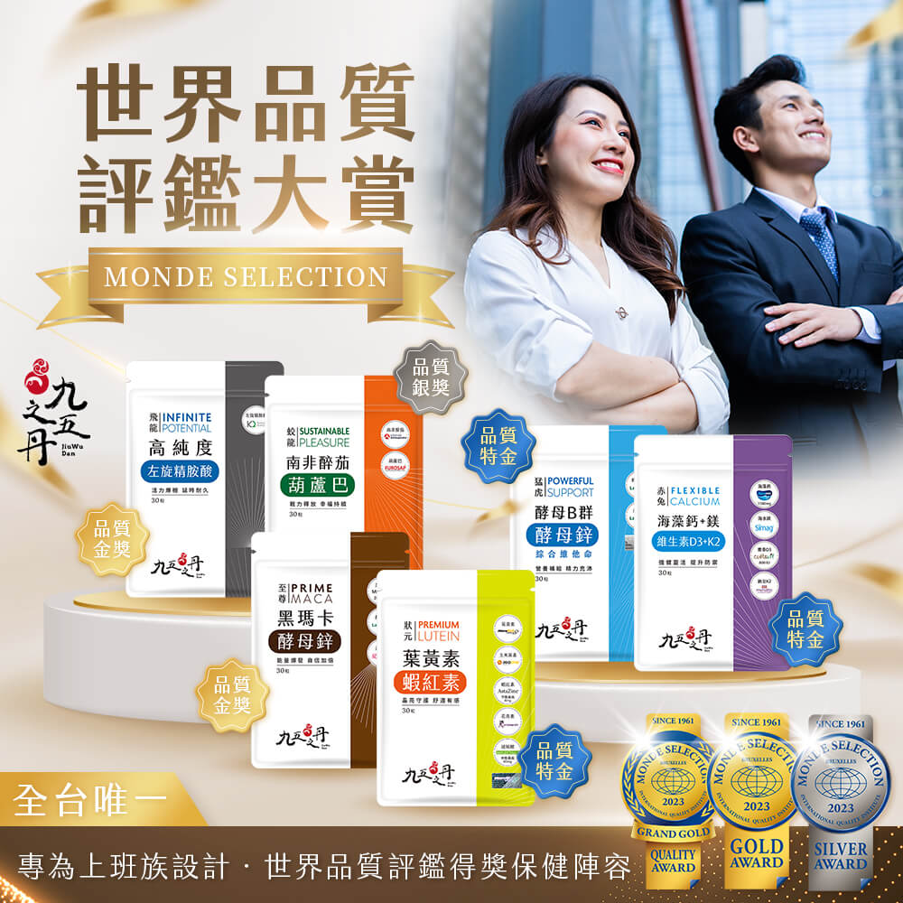 答案是——這不只是行銷話術,世界品質評鑑大賞(Monde Selection)是目前國際上歷史最悠久、規模最大、獨立性最高的產品品質評鑑機構之一。每年吸引來自世界90多國、3000多件產品報名參賽,其中保健食品類的競爭尤為激烈。